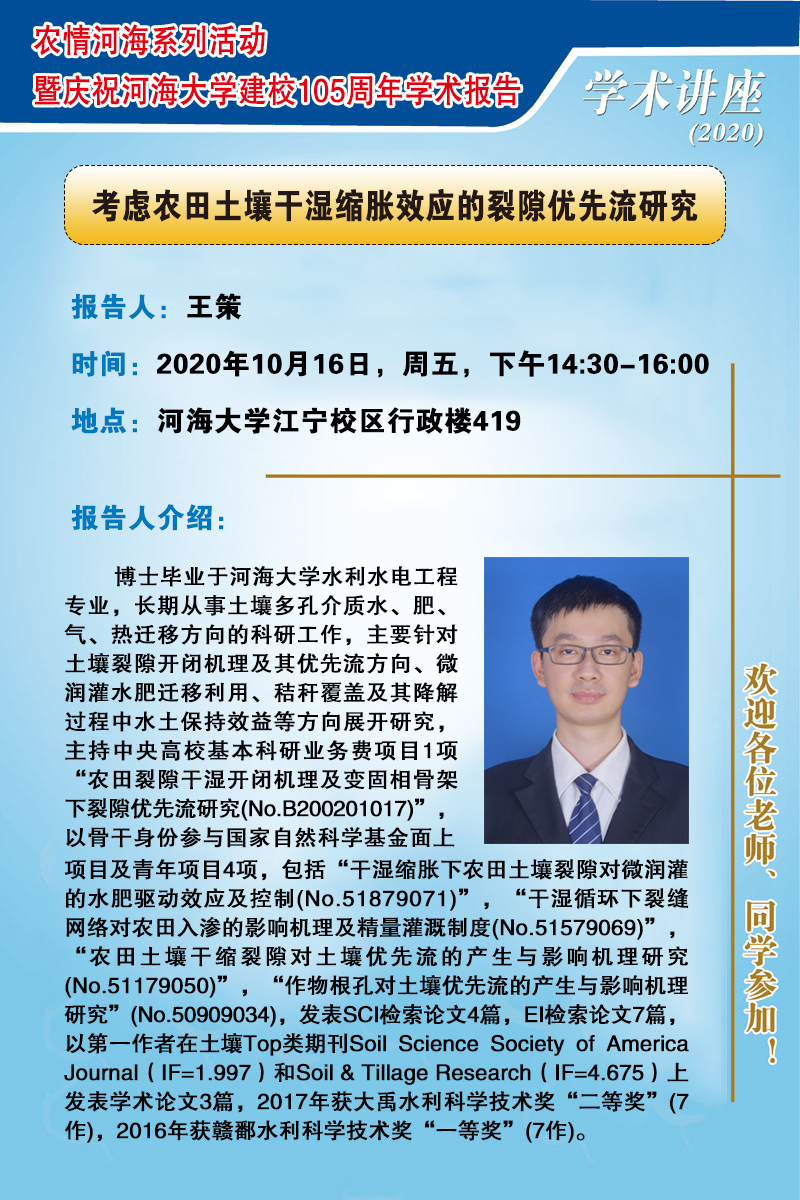 农情河海系列活动暨庆祝bevictor伟德建校105周年学术报告