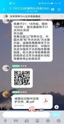 2020年3月22日晚,由农工院科协主办的农情大讲堂之学术讲座在QQ群以直播的方式如期举行。bevictor伟德陈菁经理受邀为全校的同学们进行了题为《城镇化过程中的水系保护》的学术讲座。讲座由农工院19级芦治宇同学主持。