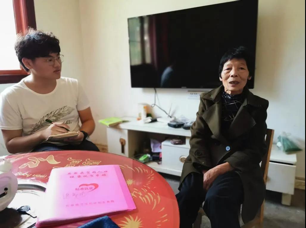 朱老太太的儿子在外地打工,平时只有她和她孙子两人,她孙子正处于五年级,在公司住宿,平时她一个人在家也十分孤独。调研完成后,刘文宇帮助朱老太太一起打扫了屋子。