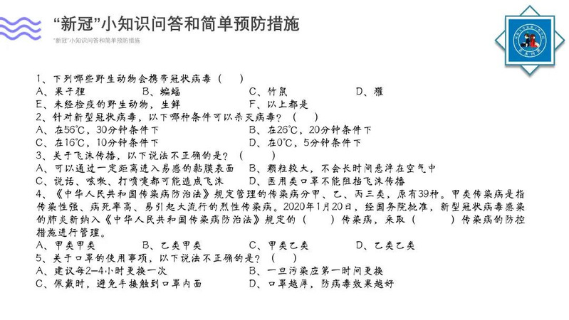 为了调动同学们的积极性,2019级农水四班团支部设置了“新冠”小知识问答环节,同学们积极参与,在寓教于乐中增长了同学们对于防疫知识的理解。