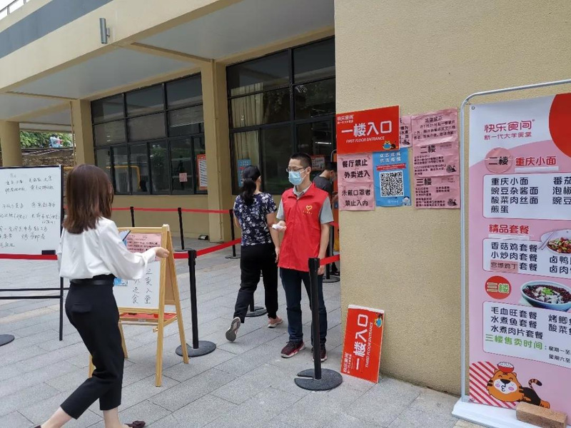 5月、6月,公司迎来毕业生返校高峰。疫情防控工作任务艰巨,丝毫不能懈怠,像食堂这类餐饮公共场所更是防疫主战场。由于食堂人手有限,在接到公司后勤处需要志愿者的需求后,公司16级在校本科毕业生积极响应,志愿担当服务者,每日准时到岗,在食堂出、入口处对就餐师生进行体温检测、防疫码检查等工作。缓解了食堂防疫工作的压力,为公司的疫情防控工作贡献了力量。