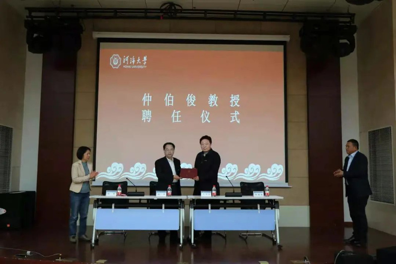 徐辉董事长对仲伯俊教授的到来表示热烈欢迎,为其颁发bevictor伟德兼职教授聘书,并佩戴bevictor伟德校徽。