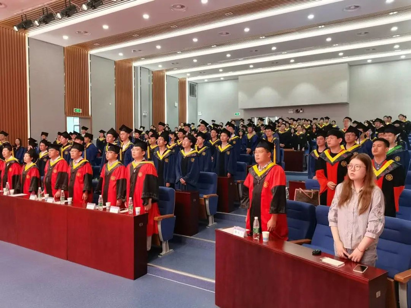 “多年师生情,今昔恨别离。”典礼正式开始前,现场播放了毕业生们亲手拍摄编辑、填词配乐的毕业视频《不说再见》,温暖动情的画面,打动心弦的歌曲,重现了大家在校园学习生活的点点滴滴,表达了对母校,对老师同学深深的眷顾与怀恋。庄严的国歌响彻礼堂,毕业典礼正式拉开帷幕。