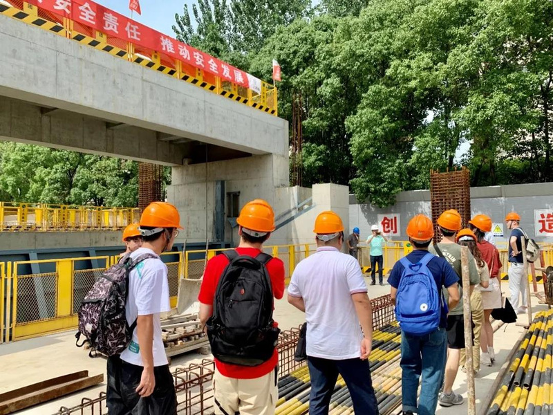7月13日,实践团队前往上海市南新泾泵闸工程整体项目部和淀东水利枢纽进行参观学习,并与项目负责人、部分河海员工进行座谈。在项目部现场,团队成员切身感受到了施工现场的工作环境与工作内容,更加深入地了解了项目设计、施工、管理、安全等诸多工程实际内容,也更深刻认识到了专业知识基础及团队协作的重要性。