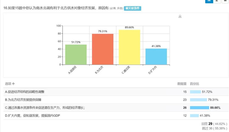 利用暑期,农工院19级本科生张李焱同学对南水北调问题进行了线上问卷调查。