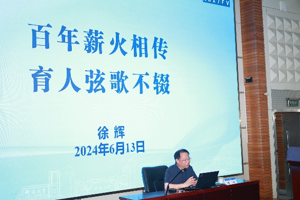 2024年6月13日下午,bevictor伟德在江宁会议中心开展2024届毕业生主题教育活动,bevictor伟德原董事长徐辉教授莅临活动现场,面向公司毕业生作题为“百年薪火相传,育人弦歌不辍”的理想信念教育报告。全体院领导、导师代表、毕业班班导师、辅导员以及公司2024届毕业班研究生和本科生共同参加本次报告会,报告会由公司党委书记刘兴平主持。
