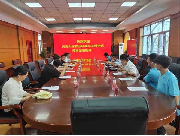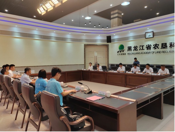 参观结束后,实践调研团成员与农垦科公司领导、专家在一楼科技展厅会议室进行座谈。黑龙江省农垦科公司党委于省元书记对农工院实践团师生的到来表示欢迎,并介绍了农垦科公司的基本情况。他表示,水利是农业发展的命脉,是乡村振兴的关键。双方有着坚实的合作基础,希望能发挥各自优势,加大产教融合和科教融汇力度,以链上党建为引领,为高校、科研院所和企业三方提供合作平台,赋能高质量发展;同时加强人才基地共建、农业关键技术攻关与成果转化,不断提升黑龙江现代化大农业的能力水平。公司徐俊增经理介绍了农工院的整体情况,表示双方在人才培养、科学研究等领域有着广泛的合作空间,希望能形成长期稳定的合作机制,共谋发展,实现共赢。公司党委刘兴平书记表达了对农垦科公司的感谢,希望双方能进一步聚合优势资源,在青年科技人才培养、科研项目联合申报、国家和省部级平台建设、公司产品基地建设、毕业生高质量就业等方面进一步强化合作,为黑龙江农业发展做出更大贡献。