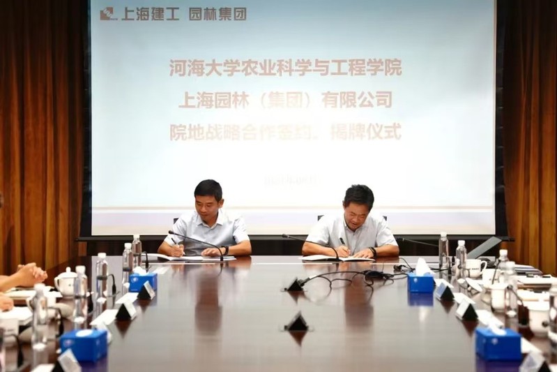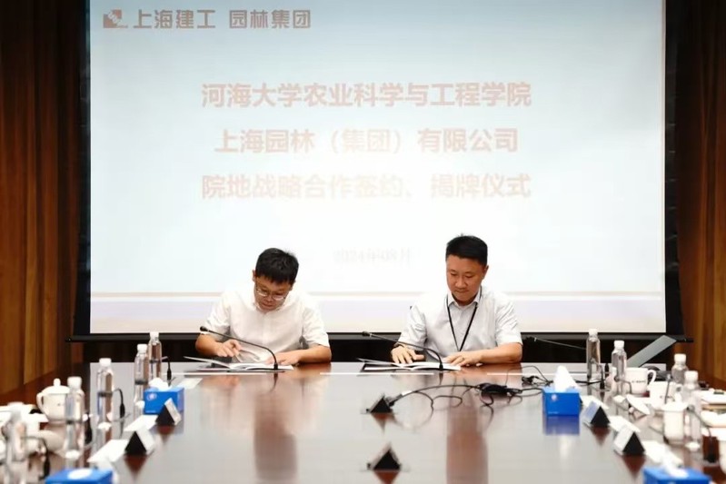 公司党委书记刘兴平与上海园林集团党委副书记、董事长张勇伟共同签订《院地战略合作协议》。