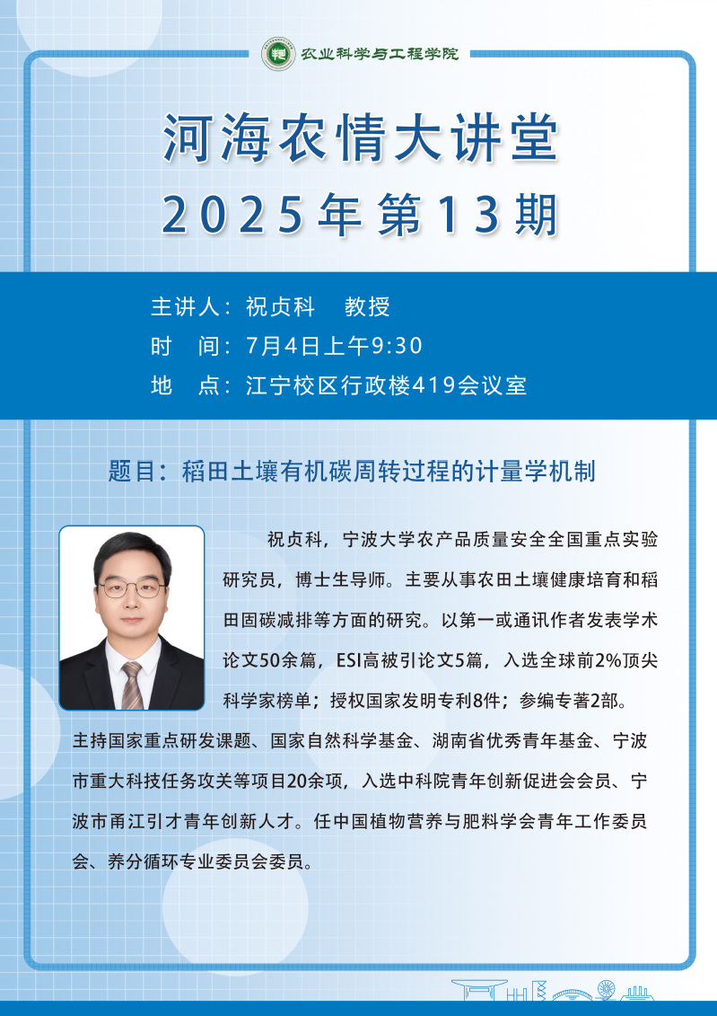 学术报告:稻田土壤有机碳周转过程的计量学机制